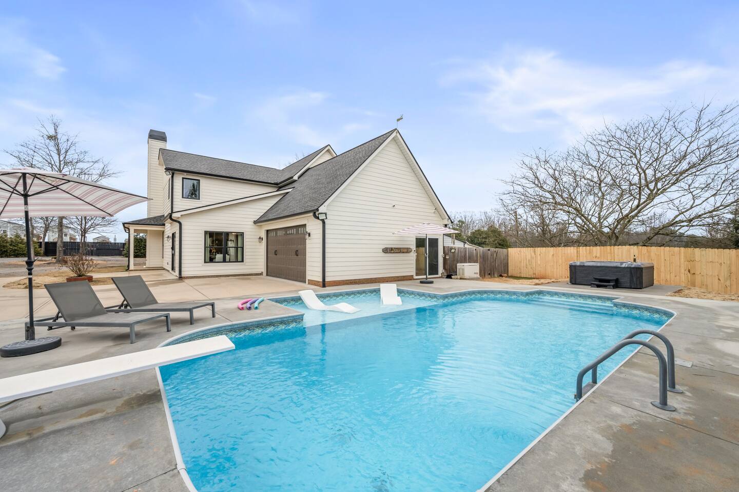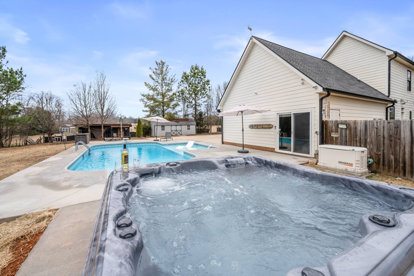 Welcome to your perfect getaway in Northern Greenville! This 5-bedroom, 3-bath, two-story home is ideal for families, groups, or friends looking for comfort, space, and entertainment. The main level features an open living area, a fully equipped kitchen, a master bedroom (with a crib if needed), and a kids bedroom with a bunk bed and trundle pull-out. Upstairs, there are 3 additional bedrooms and a loft-style game room perfect for game nights, movies, or just hanging out. With five bedrooms and three full bathrooms, everyone has space to unwind, making mornings smooth and stays effortless. Step outside and enjoy your own private oasis. Take a soak in the outdoor hot tub, cool off in the pool, or gather around the firepit in the evenings for conversation and s’mores under the stars. The backyard is set up for making memories, day or night. 📍 Nearby Attractions & Destinations: • Lake Robinson – less than 1 mile | ~2 minutes • Aurora Farms Wedding Venue – 3 miles | ~7 minutes (ask us about our discount code for wedding guests!) • The School House Venue – 4 miles | ~8 minutes • Paris Mountain State Park – 8 miles | ~16 minutes • GSP International Airport – 12 miles | ~18 minutes • Downtown Greenville – 14 miles | ~20–25 minutes • Swamp Rabbit Trail – 14 miles | ~20–25 minutes Whether you’re here to explore Greenville or simply unwind, this home offers the space, amenities, and atmosphere to make your stay truly memorable. We look forward to hosting you!